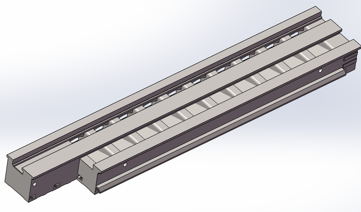 大拖板采用高強(qiáng)度低應(yīng)力合金鑄鐵制造(HT250),毛坯鑄造完畢進(jìn)行一次回火處理,粗加工結(jié)束,再進(jìn)行一次回火處理,半精加工結(jié)束,最后一次精加工之前進(jìn)行一次振動(dòng)時(shí)效,結(jié)構(gòu)設(shè)計(jì)保證熱對(duì)稱和熱穩(wěn)定性,有較高的剛性和強(qiáng)度。