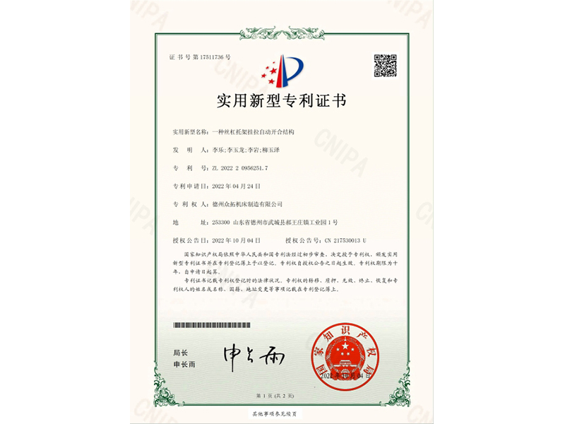 實用新型專利證書