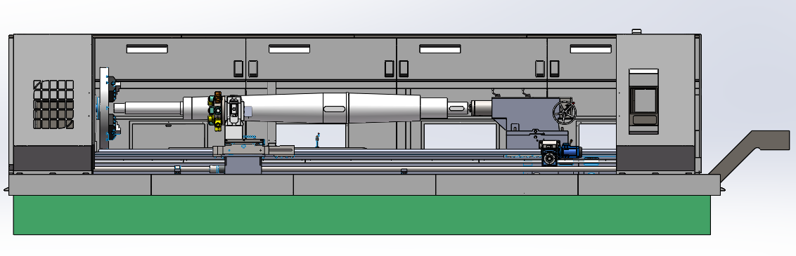 機(jī)床整體可選配雙拉門結(jié)構(gòu)半防護(hù):機(jī)床前部有兩個(gè)拉門,右側(cè)拉門可沿床身方向自由拖動(dòng),操作箱體可以一定幅度的轉(zhuǎn)動(dòng),在工件對(duì)刀時(shí),便于操作。左拉門在床頭箱及卡盤之間相互移動(dòng),當(dāng)安裝工件時(shí)推到床頭箱上部,不影響工件安裝,當(dāng)安裝完成后,拉門向右拉動(dòng),可將卡盤整體罩住,防護(hù)加工時(shí),卡盤處水、屑的飛濺。機(jī)床后側(cè)有通長(zhǎng)的擋屑屏,可通長(zhǎng)防護(hù)后側(cè)切屑的飛濺,并可協(xié)助將切屑導(dǎo)入下部的接屑盤,以便集中收集,有效保持加工現(xiàn)場(chǎng)的整潔環(huán)保。