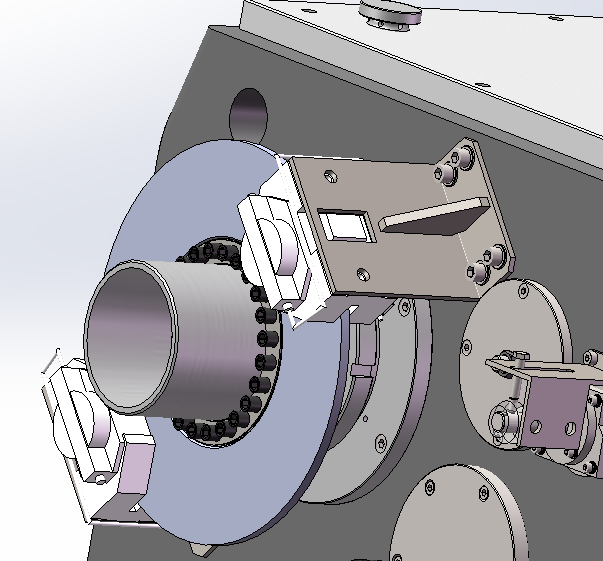 4、車削主傳動(dòng)為伺服主電機(jī)加精密減速機(jī)配合同步帶傳動(dòng)結(jié)構(gòu),主電機(jī)直接與減速機(jī)相連,輸出到同步帶輪,同步帶輪傳動(dòng)到I軸,對(duì)設(shè)備進(jìn)行驅(qū)動(dòng),傳動(dòng)平穩(wěn),響應(yīng)速度快,并為設(shè)備實(shí)現(xiàn)高的分度精度提供前提條件。
