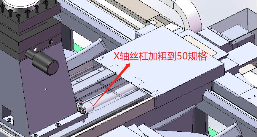 X向及Z向絲杠均采取了防護(hù)措施:X向絲杠位于滑板下,兩頭安裝有防護(hù)板,可有效防塵、防屑;Z向絲杠上方設(shè)計(jì)有絲杠護(hù)罩擋板,可有效防護(hù)切屑的飛濺對(duì)絲杠的影響。